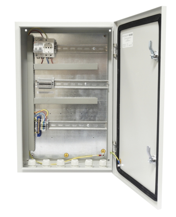 Щит узла учета ЩУУТЭ1 предназначен для электропитания составных элементов теплосчетчика Т34, размещения тепловычислителя ТВ7 и средств связи для передачи данных на удаленный диспетчерский пункт.
